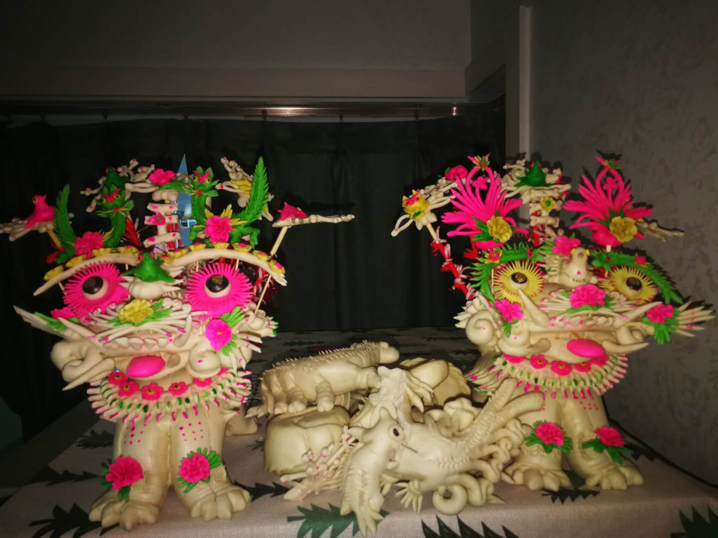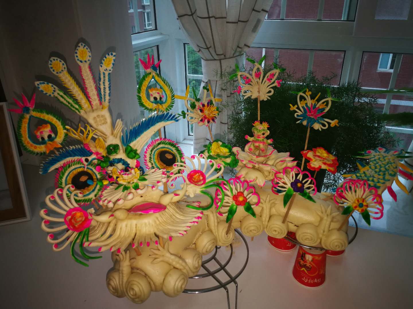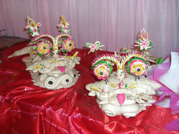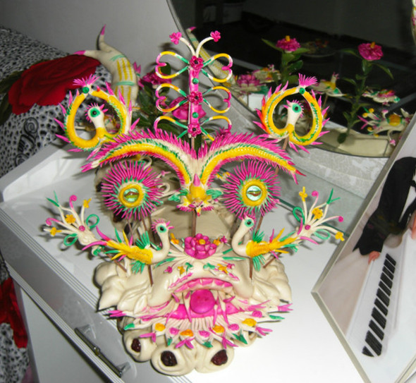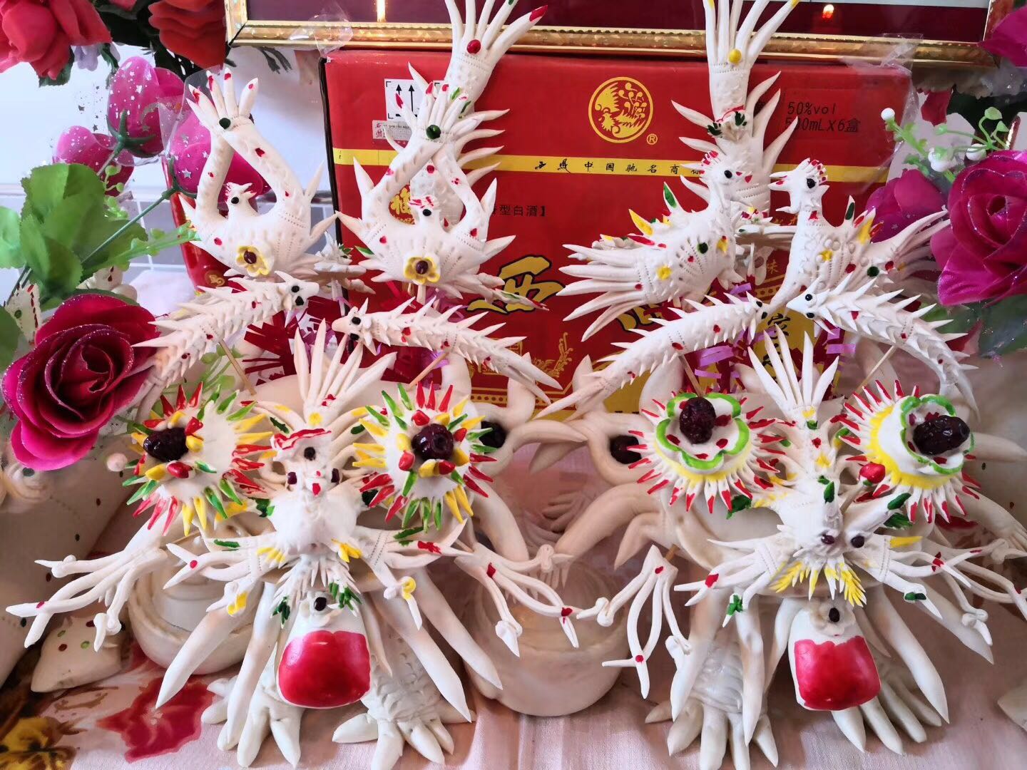 摆在新人床头柜上的花馍