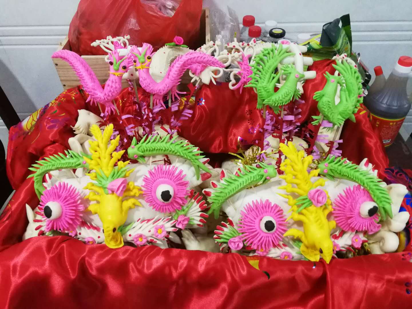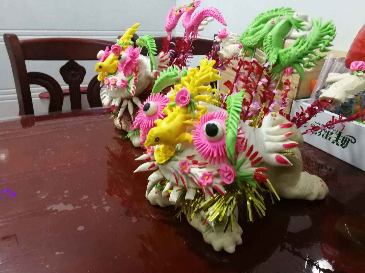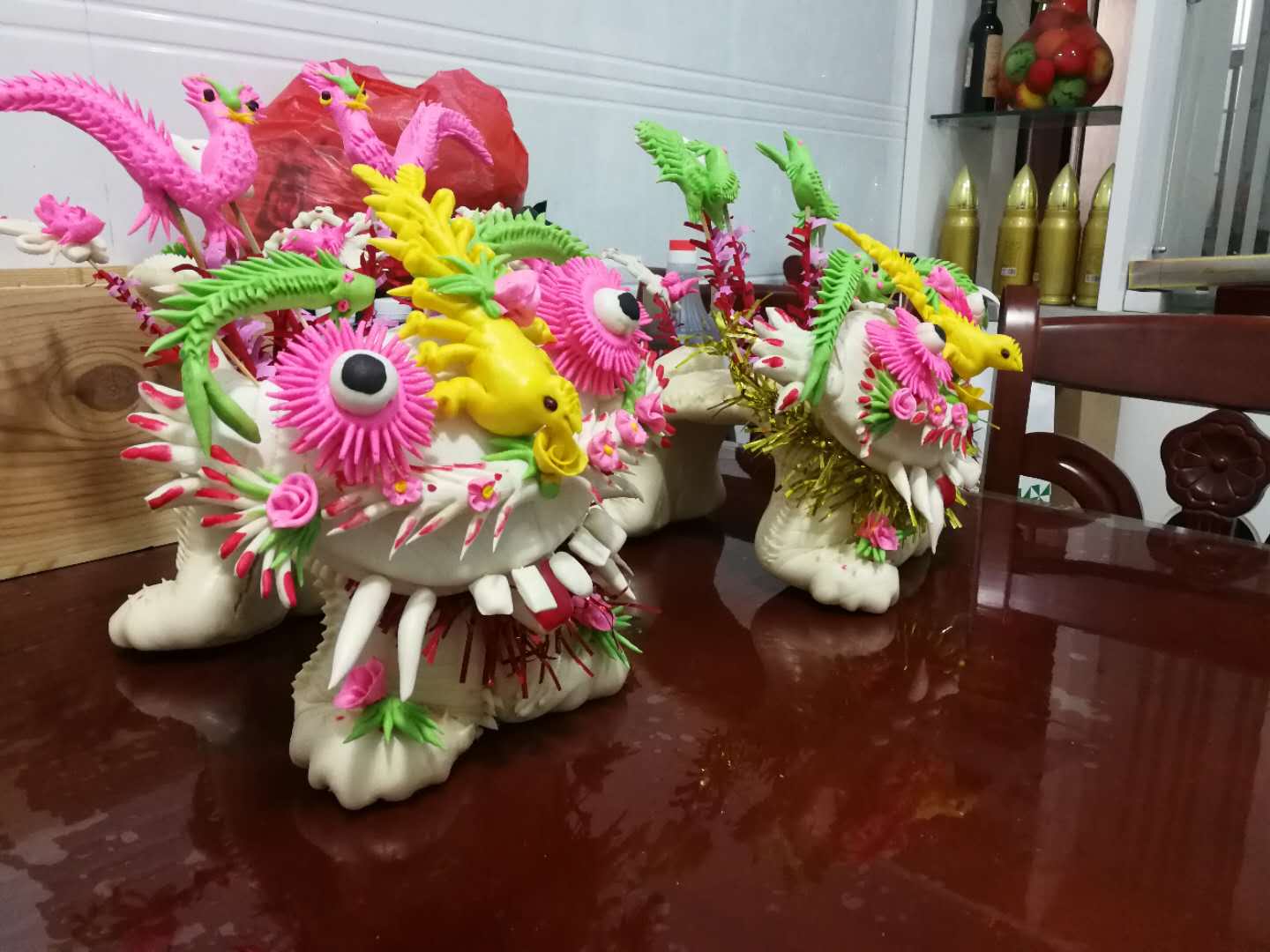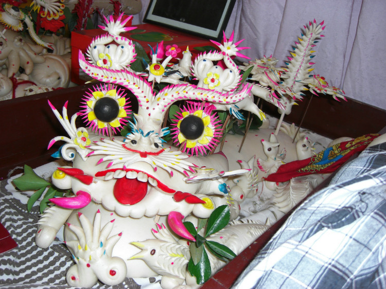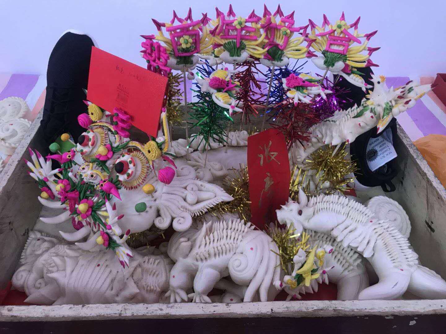 摆在新人床头柜上的花馍