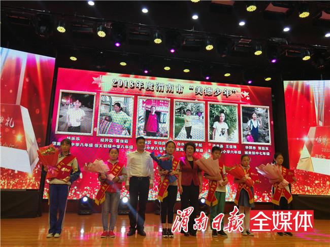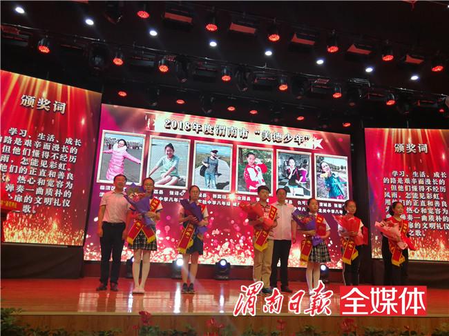5月28日,市文明办、市教育局、团市委、市妇联在华州区联合举办2018年渭南市“美德少年”颁奖典礼,会上表彰了全市60名“美德少年”。市委常委、宣传部长王玉娥参会并为受表彰少年颁奖。